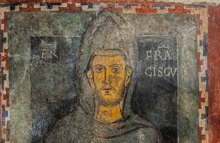 Nella foto il ritratto di San Francesco nel Sacro Speco di Subiaco, considerata una delle prime raffigurazioni del Santo