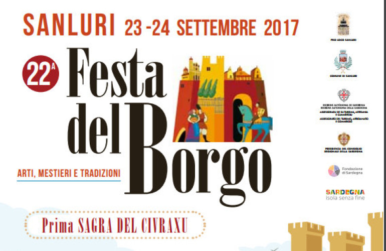 Tutto pronto per la 22esima edizione della Festa del Borgo di Sanluri, che si terrà il 23 e 24 settembre 2017 con un calendario ricco di eventi. Sarà inaugurato anche il Museo del pane e della panificazione del Civraxu